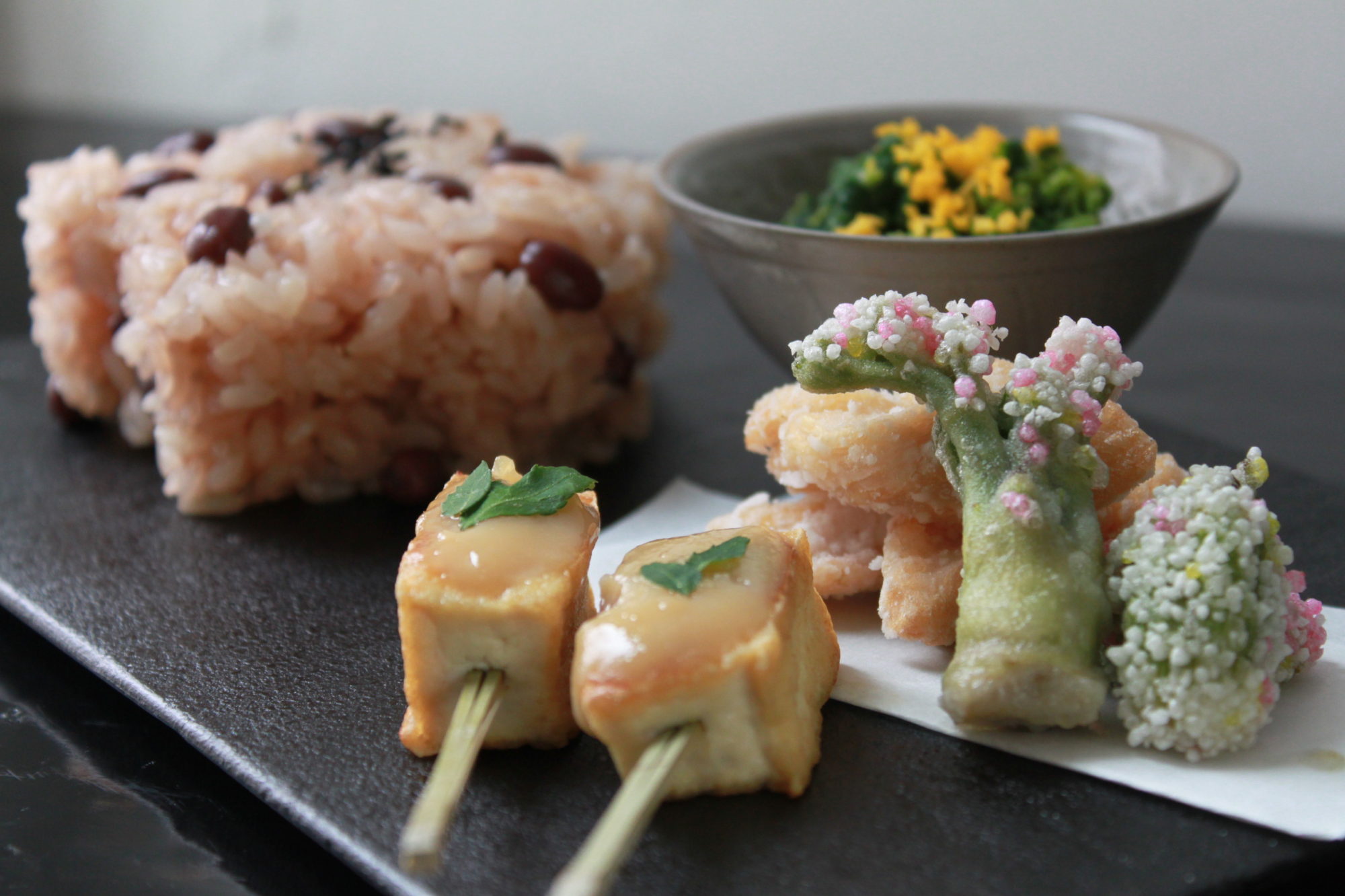 お赤飯と春の祝い膳 うつわ 杉田明彦(漆) 南恵子和食料理教室より